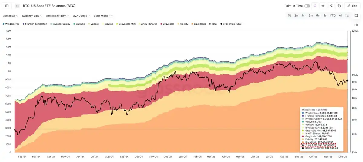 Outre les réserves détenues par les entreprises, à ce jour, les ETF spot sur Bitcoin détiennent collectivement environ 1,311 million de BTC. Les trois premiers sont : BlackRock avec environ 777 000, Fidelity avec environ 202 000, et Grayscale avec environ 167 000.