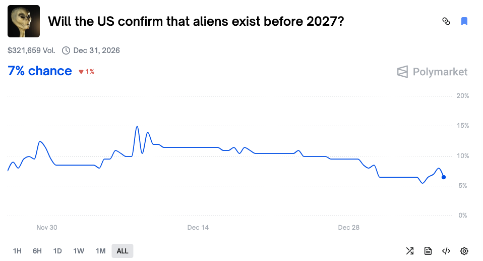 - Lien du contrat d'événement : https://polymarket.com/event/will-the-us-confirm-that-aliens-exist-before-2027?tid=1767610632144
