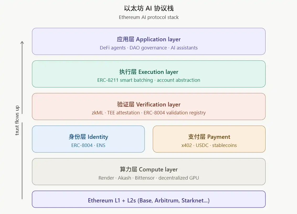 Dans l'ensemble, l'idée centrale de ce cadre peut être résumée en une phrase : Ethereum n'a pas pour but d'accélérer l'IA, mais de faire fonctionner l'IA dans un environnement vérifiable, auditable et décentralisé.