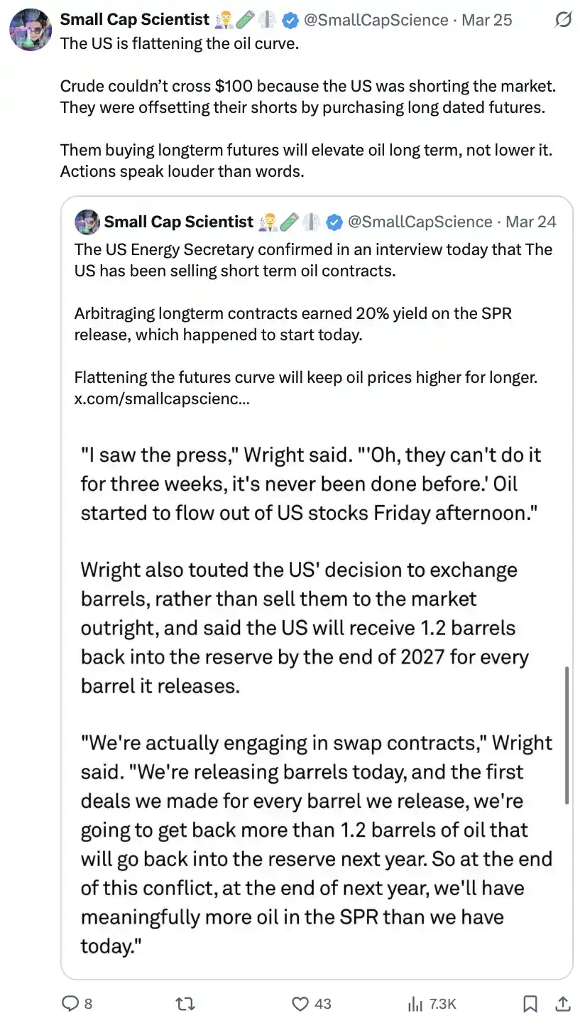 Je sais aussi qu'à court terme, le marché pourrait connaître un soulagement, voire une hausse (certains citeront peut-être ce passage pour se moquer de moi). Mais je ne parle pas de la tendance de cette semaine, mais d'une tendance de cycle plus long. Parce que je prends vraiment le temps de faire des recherches approfondies, de comprendre ce qui se passe. Et actuellement, il se passe beaucoup de choses, et pas seulement la guerre en Iran.