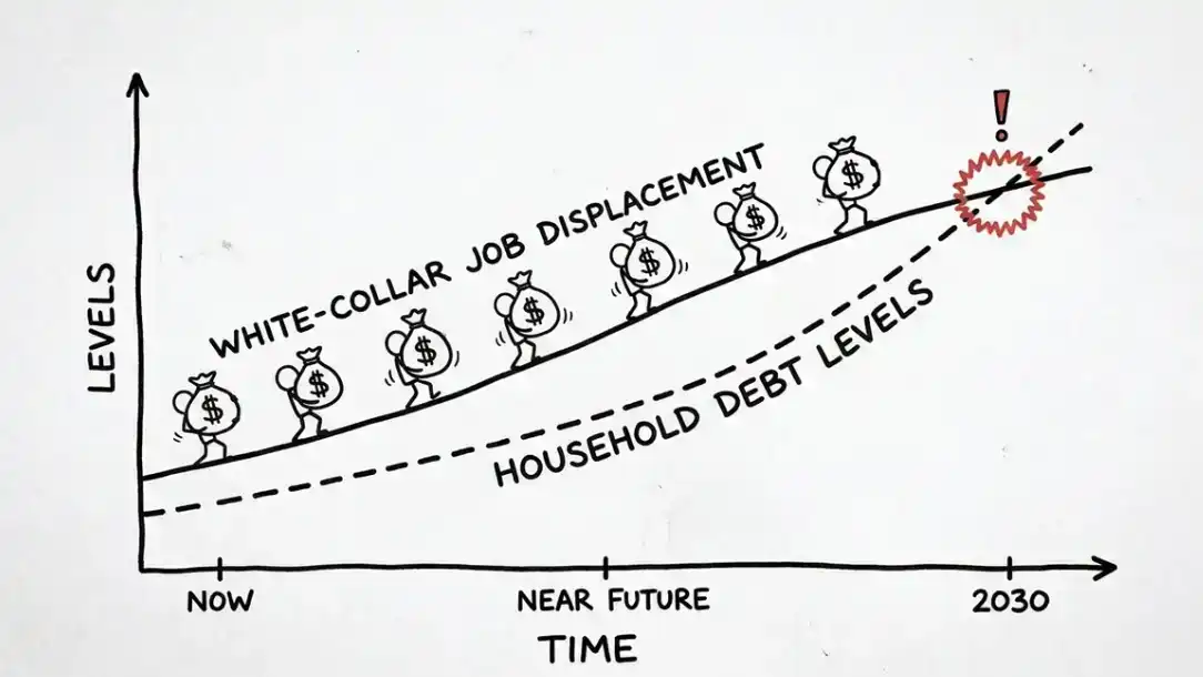 Nous évoluons dans un système économique basé sur la dette. Dans une économie fortement endettée, des « gains de productivité déflationnistes » à grande échelle n'apportent pas la prospérité, mais risquent de faire exploser tout le système. La population des cols blancs est généralement endettée avec des prêts immobiliers, des prêts automobiles et des prêts étudiants non remboursables. L'IA n'a pas besoin de remplacer tous les emplois pour déclencher une crise ; même le remplacement d'une petite partie des postes peut provoquer une réaction en chaîne, évoluant finalement en défauts systémiques au niveau du système bancaire.