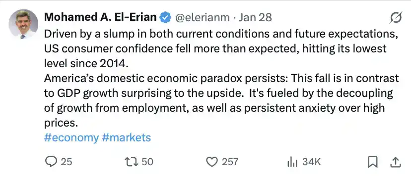 Ce ne sont pas des prédictions, mais des signaux qui se produisent en ce moment même : la confiance des consommateurs tombe à un niveau historiquement bas, le moteur de la consommation s'éteint.