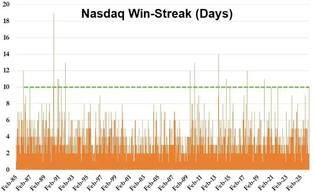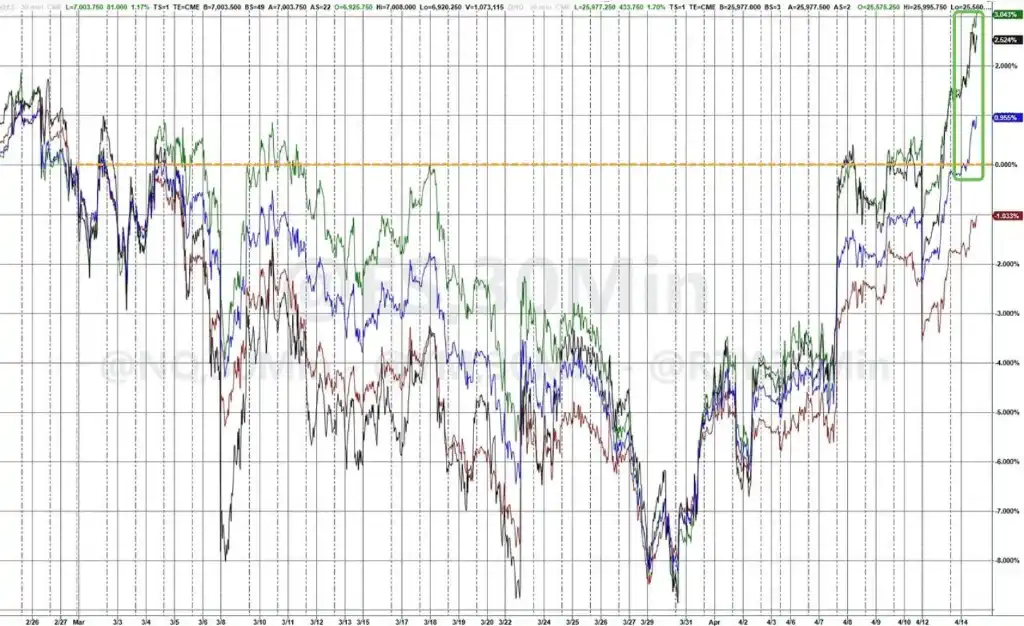 Over the past period, Wall Street has been selectively "filtering out the noise."The S&P 500 index has risen nearly 10% since March 27, while the Nasdaq 100 has gained about 12% over the same period, closing higher for 10 consecutive trading days—marking the index's longest winning streak since 2021.
