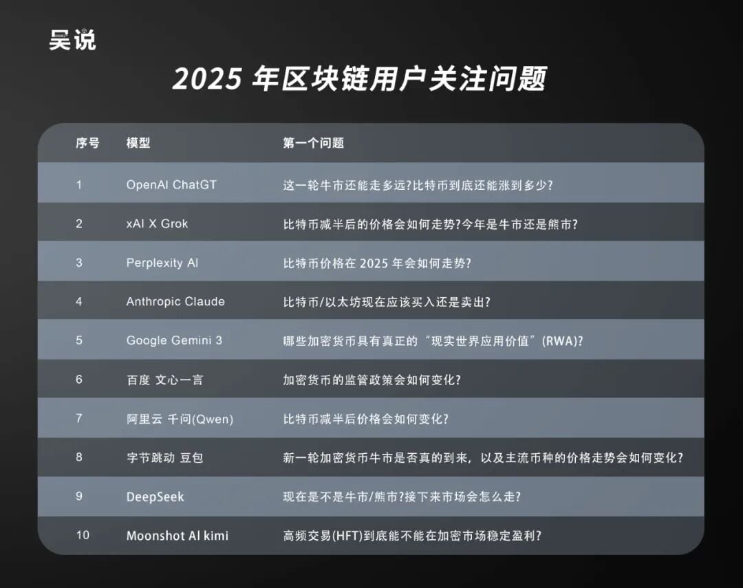 Titre original : Qu'est-ce qui préoccupe le plus les utilisateurs de crypto en 2025 ? Les réponses de 10 grands modèles d'IA varient