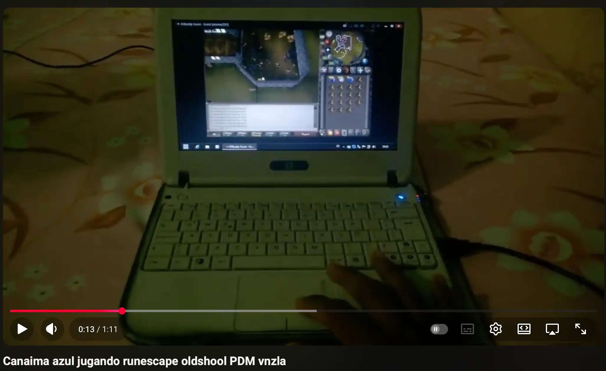 Sur YouTube, une vieille vidéo publiée en février 2018 montre comment jouer à OSRS sur un ordinateur portable Canaima avec seulement 2 Go de RAM. Dans les années 2010, le gouvernement vénézuélien a distribué gratuitement des millions d’ordinateurs Canaima aux étudiants pour les aider dans leurs études.