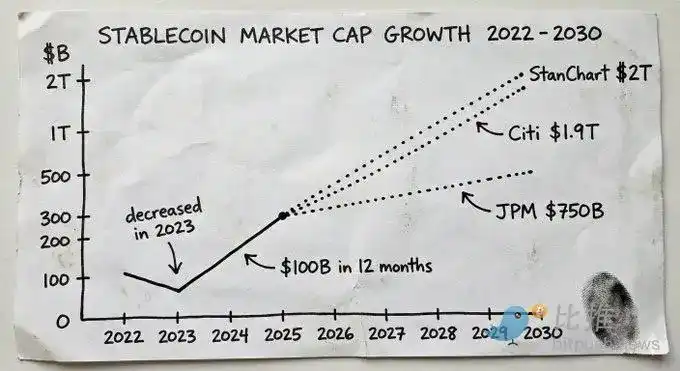Ces données de prévision reflètent une conviction institutionnelle ferme. JPMorgan prévoit que la capitalisation boursière des stablecoins atteindra 5000 à 7500 milliards de dollars dans les prochaines années. La prévision de base de Citibank est de 1,9 billion de dollars d'ici 2030. Standard Chartered prévoit quant à lui 2000 milliards de dollars d'ici 2028. Aujourd'hui, les émetteurs de stablecoins figurent parmi les dix plus grands détenteurs de bons du Trésor américain au monde.