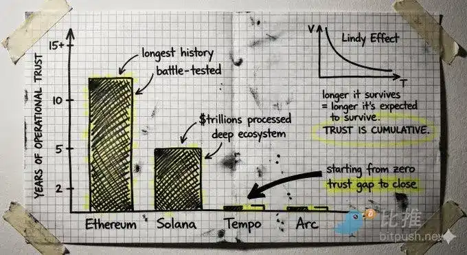 Les chaînes matures possèdent cette confiance accumulée. Solana a traité des billions de dollars de valeur d'échange, possède des outils, des portefeuilles, des ponts et des intégrations bien établis. L'historique opérationnel d'Ethereum est encore plus long. La question est de savoir si l'écart entre ce que ces chaînes offrent actuellement et les besoins spécifiques aux paiements est plus grand que le fossé de confiance qu'une nouvelle chaîne doit combler.