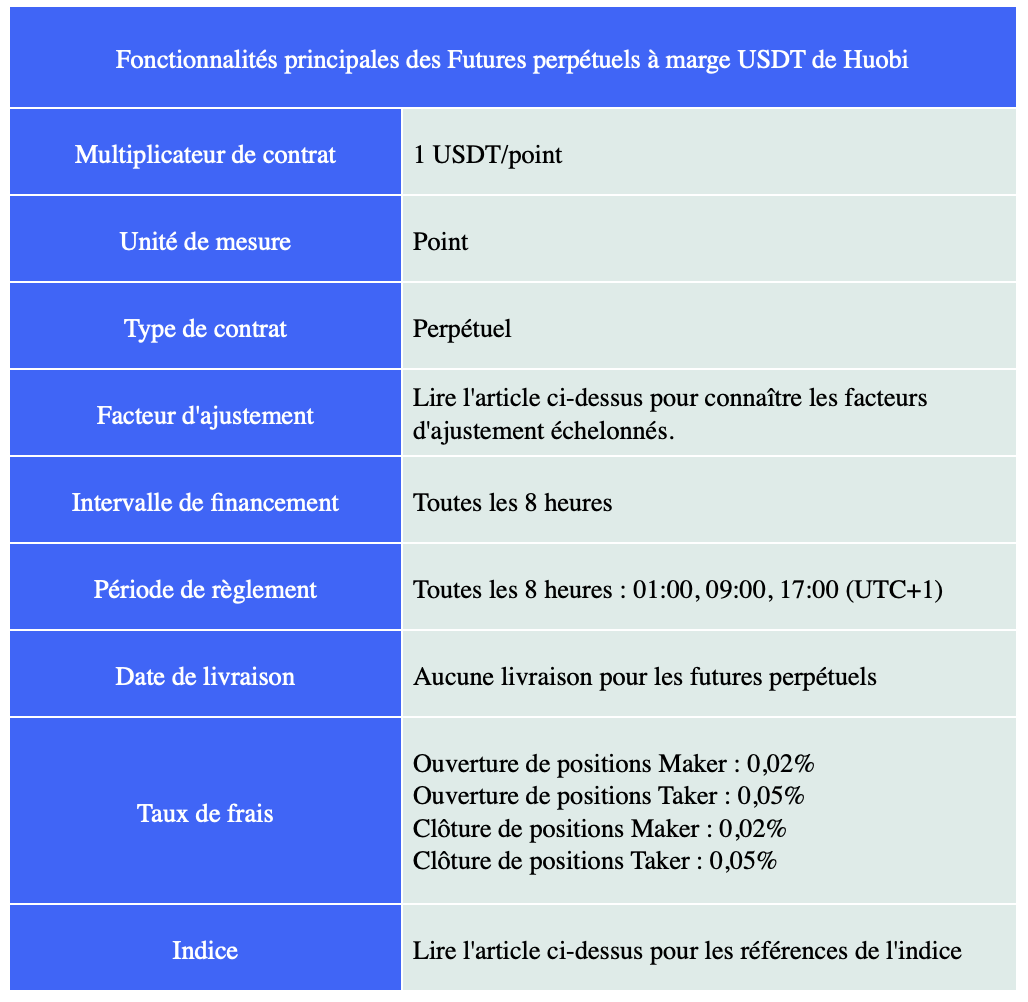 [Références de l'indice des Futures perpétuels à marge USDT>>>]