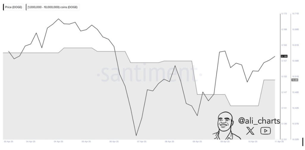 Ahead of this Dogecoin price rebound, DOGE whales are actively accumulating, which is a positive for the foremost meme coin. Crypto analyst Ali Martinez revealed that these whales have bought over 80 million DOGE in the last 24 hours. Whale accumulations like these are known to usually precede a price reversal, suggesting that the meme coin could soon rally.