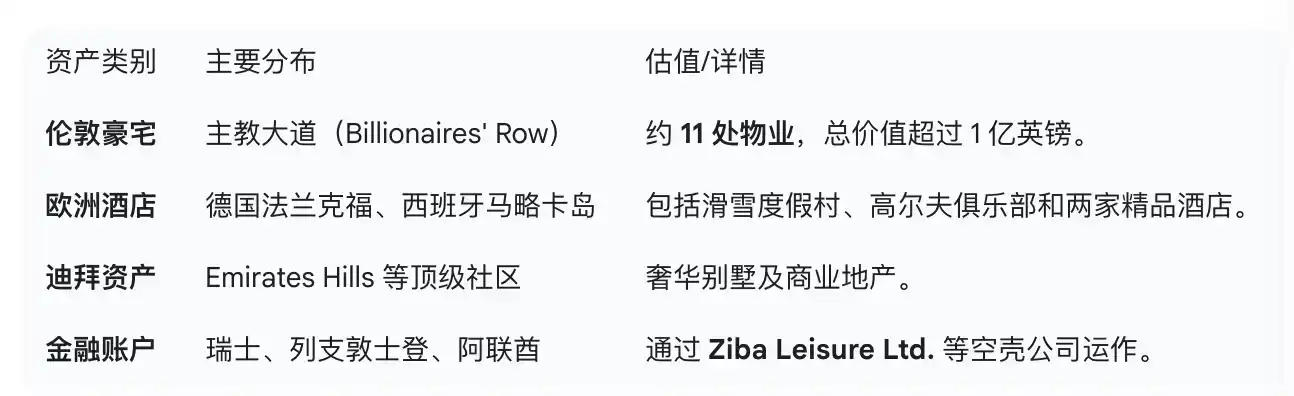 Following the complex corporate network, the Ansari Group布局 (laid out) a vast real estate business empire overseas. Bloomberg tracked this network to over a dozen properties in London alone, as well as several five-star hotels in the German financial center Frankfurt and Spain, among other locations.