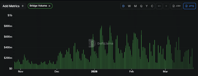 Analisis lebih lanjut menunjukkan bahwa protokol Circle telah melihat volume bridge yang tinggi sejak awal tahun 2026. Lonjakan ini adalah hasil dari kelemahan yang terlihat pada Februari dan sebagian besar Januari, karena trader membridge aset ke stablecoin.