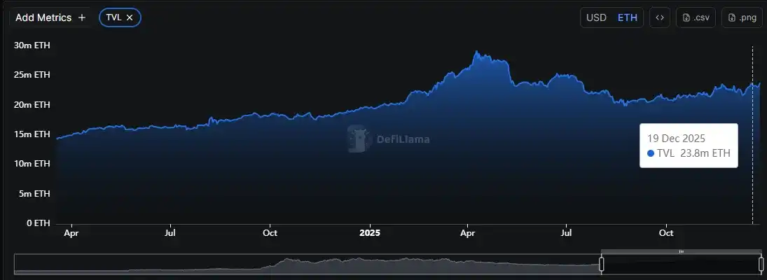 Total TVL on-chain mencapai USD 1.175 miliar, naik 1,29% secara bulanan, secara keseluruhan menunjukkan tren fluktuatif. Jumlah staking ETH tetap stabil, trennya menunjukkan pola fluktuasi yang meningkat, mencerminkan keyakinan pemegang jangka panjang yang relatif solid.