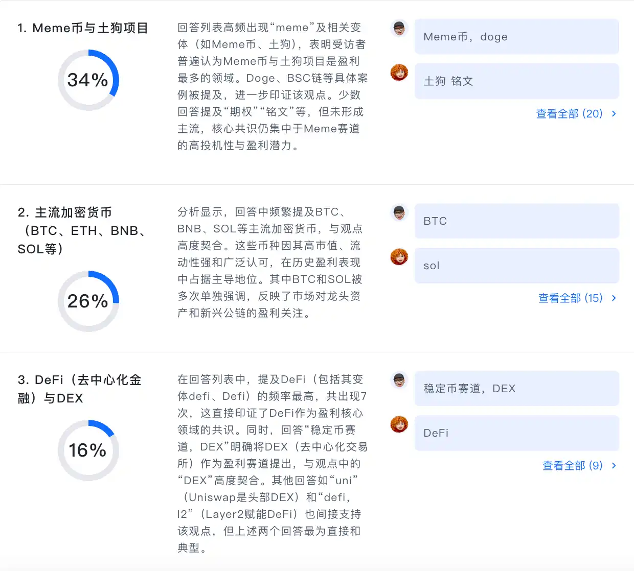 Selain itu, dalam proyek tunggal, ada juga yang memberikan jawaban "WET, emas, PING, Binance Alpha, DOGE", hasilnya tidak terlalu representatif dan referensi, jadi di sini tidak dianalisis secara terpisah, hanya disebutkan.