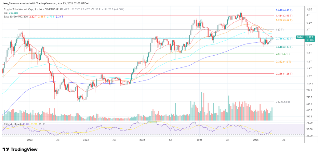 Pada waktu press, total kapitalisasi pasar crypto berada di $2,58 triliun.
