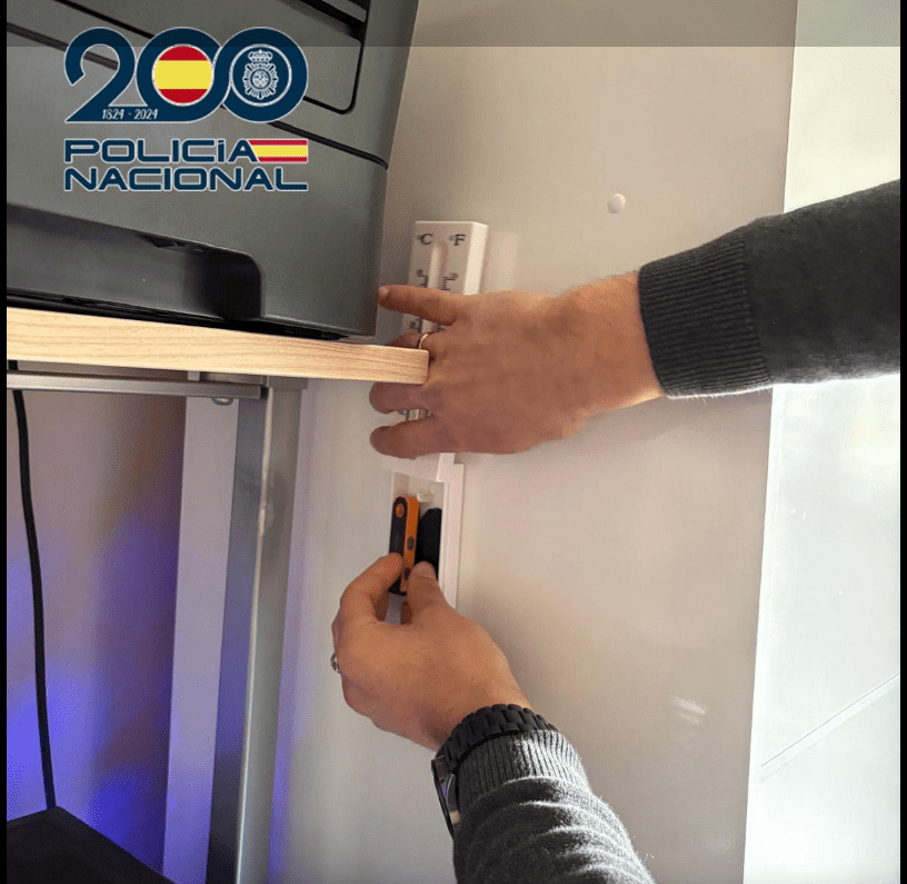 Otoritas menemukan penemuan tidak biasa selama penggerebekan: dua dompet dingin kripto yang disembunyikan di dalam termometer dinding rumah. Sumber: Ministerio Del Interior
