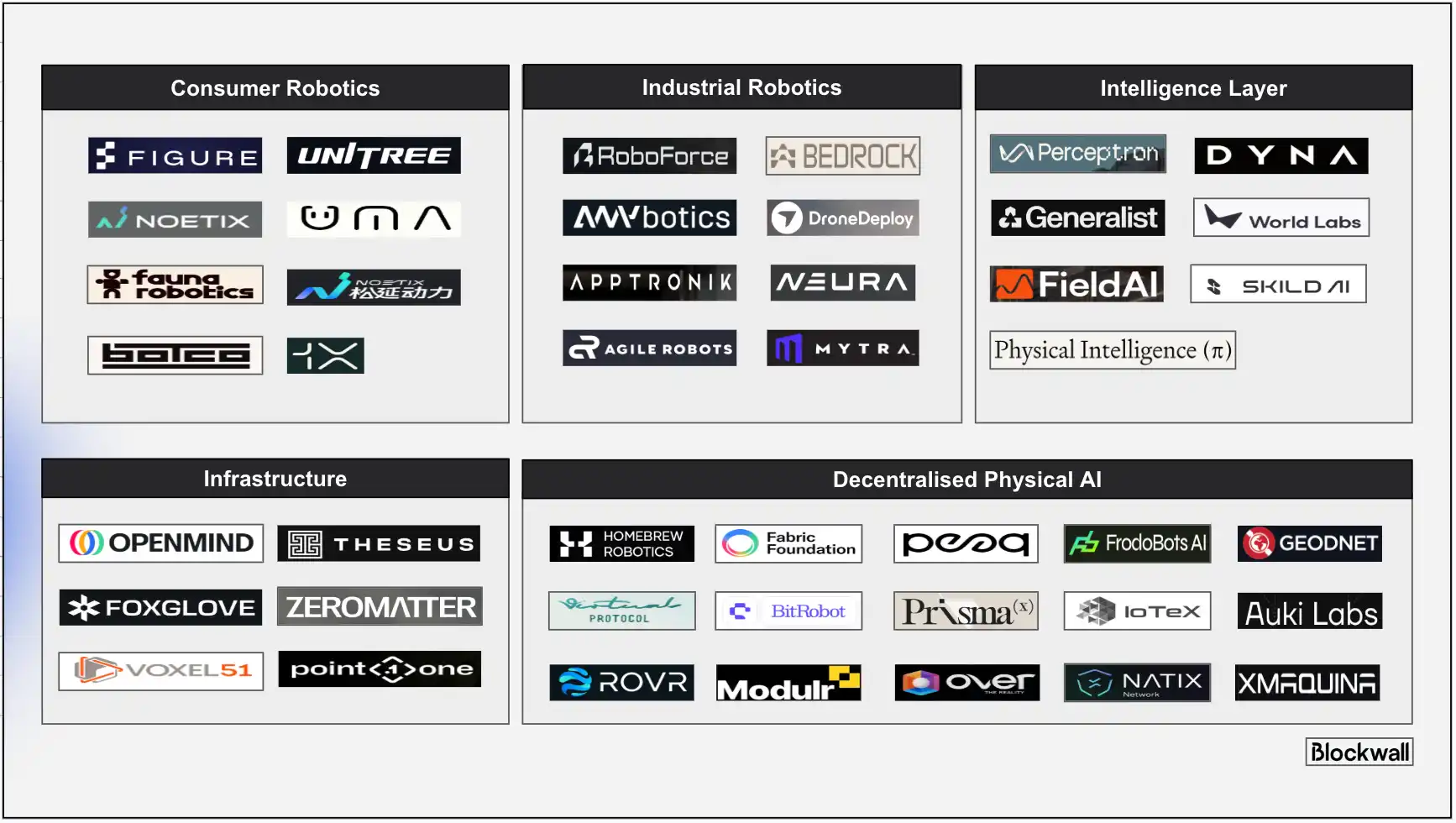 Berkembang bersama otak robot adalah AI fisik terdesentralisasi. Misalnya, jaringan infrastruktur terdesentralisasi Fabric Protocol menyediakan identitas on-chain dan dompet kripto untuk robot otonom, dan menggunakan kriptografi untuk memverifikasi pekerjaan mesin. Perusahaan seperti Auki, Peaq, dan IoTeX sedang membangun "ekonomi mesin", di mana robot dapat berbagi peta 3D, memverifikasi data, dan bertransaksi secara otonom. Pendekatan terdesentralisasi ini memastikan bahwa lapisan koordinasi tidak dikendalikan oleh satu perusahaan.