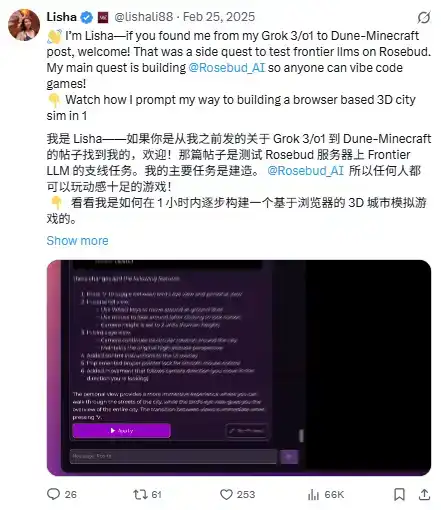 Martin Casado dan tim a16z mendampingi pertumbuhan Rosebud dari awal. Saya dan Martin pernah memiliki percakapan kunci, mendiskusikan apakah JavaScript adalah stack teknologi yang tepat untuk game Rosebud—memilih Unity atau Roblox mungkin lebih populer, tetapi peningkatan pembuatan kode JavaScript jauh lebih cepat, karena aksesibilitas data pelatihan lebih tinggi. Tim ini mengejar kebenaran, bersedia bertaruh pada taruhan yang dapat membawa lebih banyak pembangun. Ini adalah jalan menuju masa depan ideal: kita harus membangun, kita harus berinovasi.