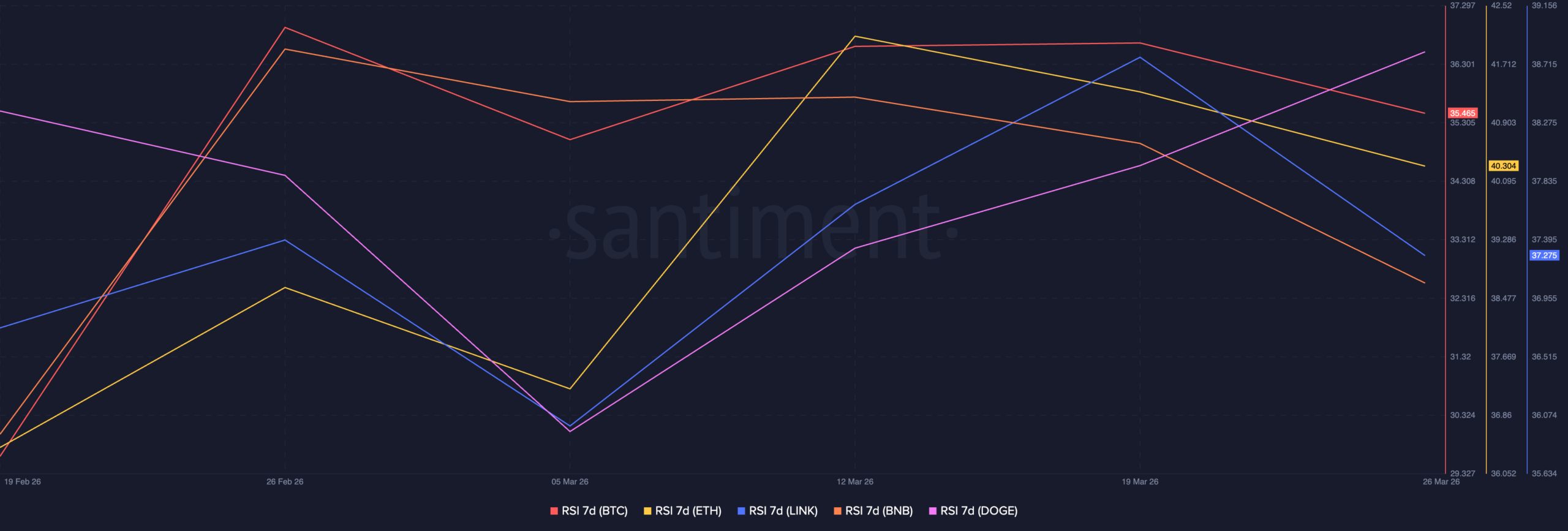 Tetapi RSI dari semua token, termasuk Bitcoin, yang berada di bawah tanda level 50, alias level netral, menunjukkan bahwa sentimen pasar secara keseluruhan berada di tangan para penjual.