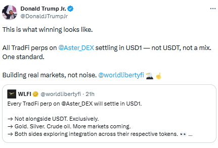 • USD1 kini berfungsi sebagai lapisan dasar untuk pasar perpetual dan inisiatif RWA ASTER, memperkuat likuiditas.