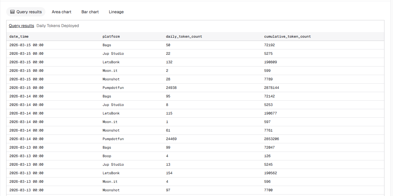 Dari segi struktur pasar, dominasi Pump.fun di ekosistem Solana semakin menguat. Mengambil data 15 Maret sebagai contoh, pangsa pembuatan token Pump.fun mencapai 99,1%, rasio token lulus (graduate) adalah 94,8, dan pangsa volume perdagangan harian sekitar 93%. Pada hari itu, Pump.fun meluncurkan 24.938 token, sedangkan LetsBonk hanya 132, Bags 50, Moonshot 28, volume harian platform peluncuran token lainnya sudah sepenuhnya tidak dapat bersaing dengan Pump.fun.