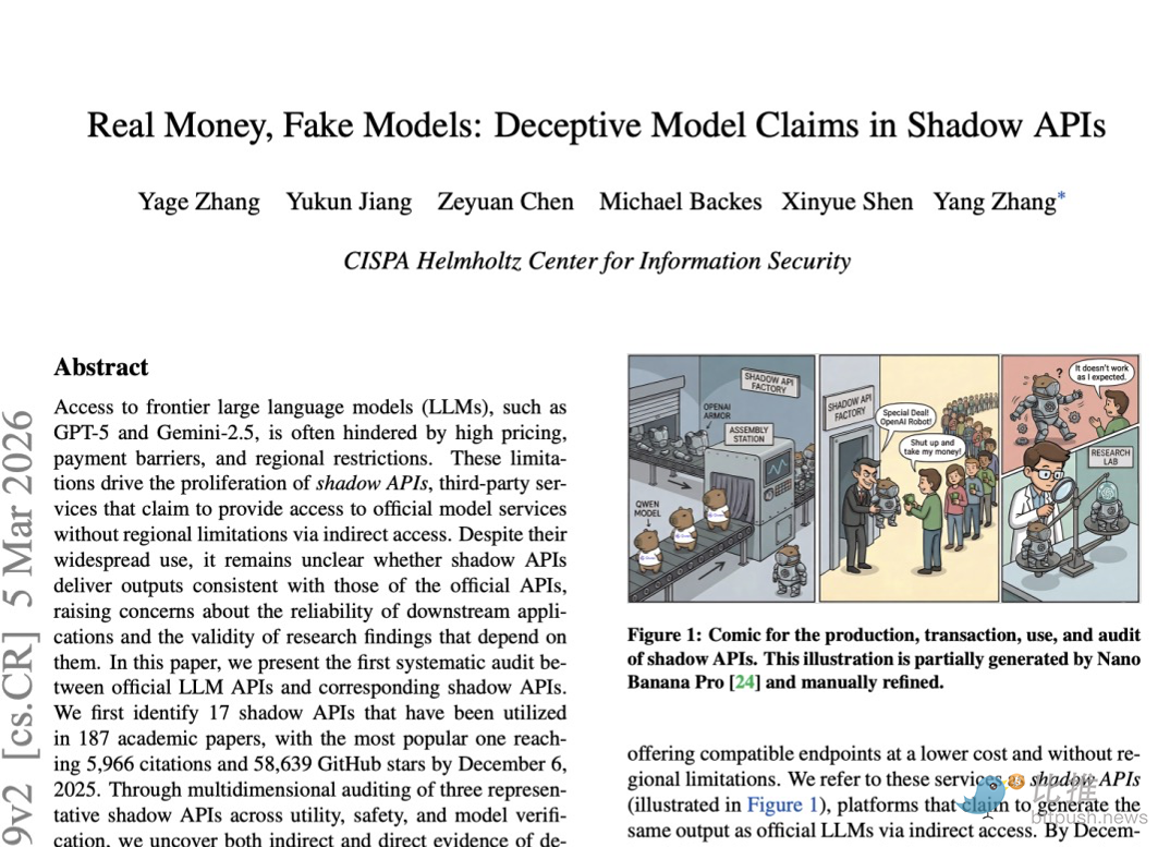 Awal Maret, CISPA (Helmholtz Center for Information Security) merilis laporan penelitian berjudul "Real Money, Fake Models: Deceptive Model Claims in Shadow APIs" (Uang Sungguhan, Model Palsu: Klaim Model Menipu dalam API Bayangan).