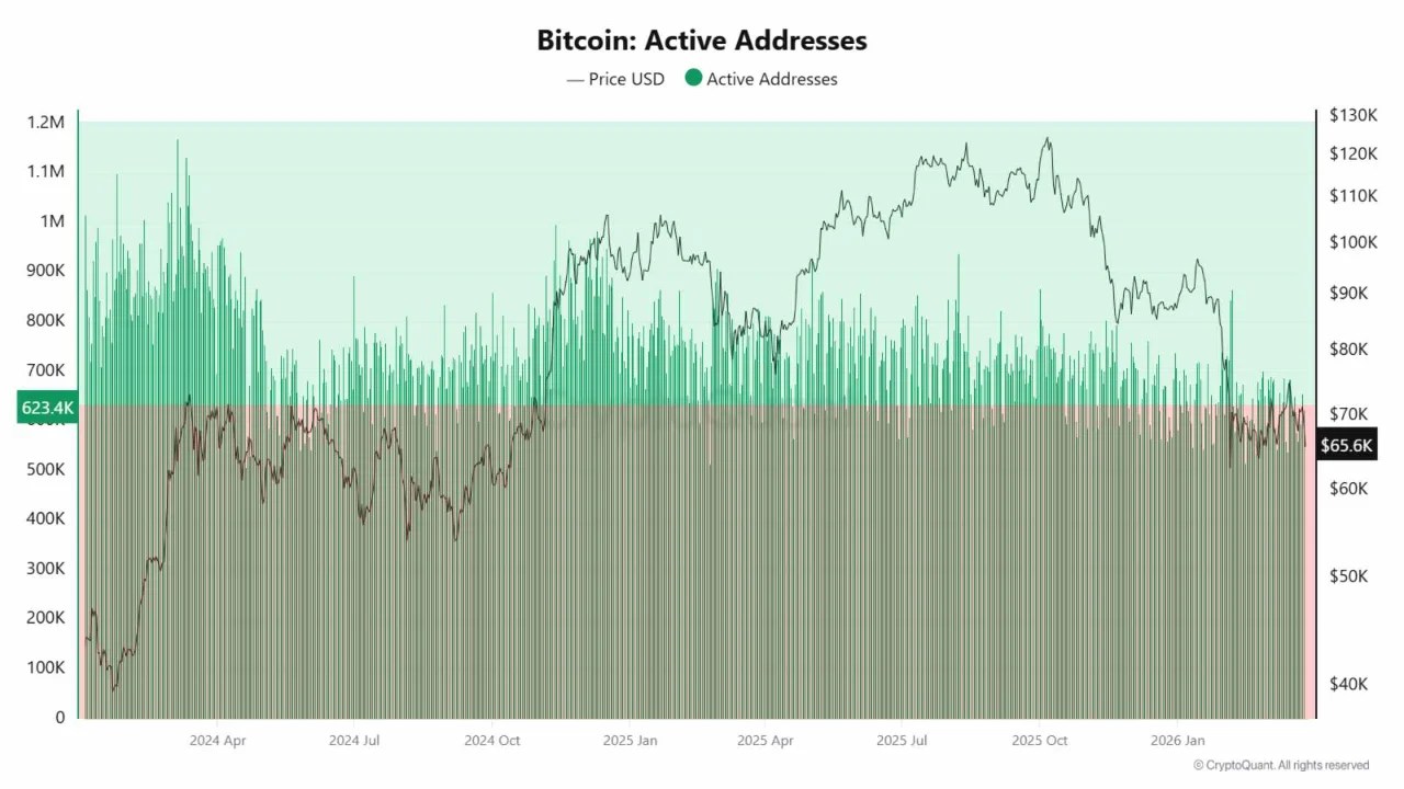Situasi saat ini semakin diperkuat oleh metrik Bitcoin: Alamat Aktif, yang melacak jumlah alamat dompet unik yang aktif mengirim atau menerima Bitcoin dalam periode tertentu. Ketika alamat aktif menurun bersamaan dengan harga, ini menunjukkan bahwa permintaan yang lemah hadir, dan bahwa pasar Bitcoin kemungkinan akan kesulitan dengan pemulihan.