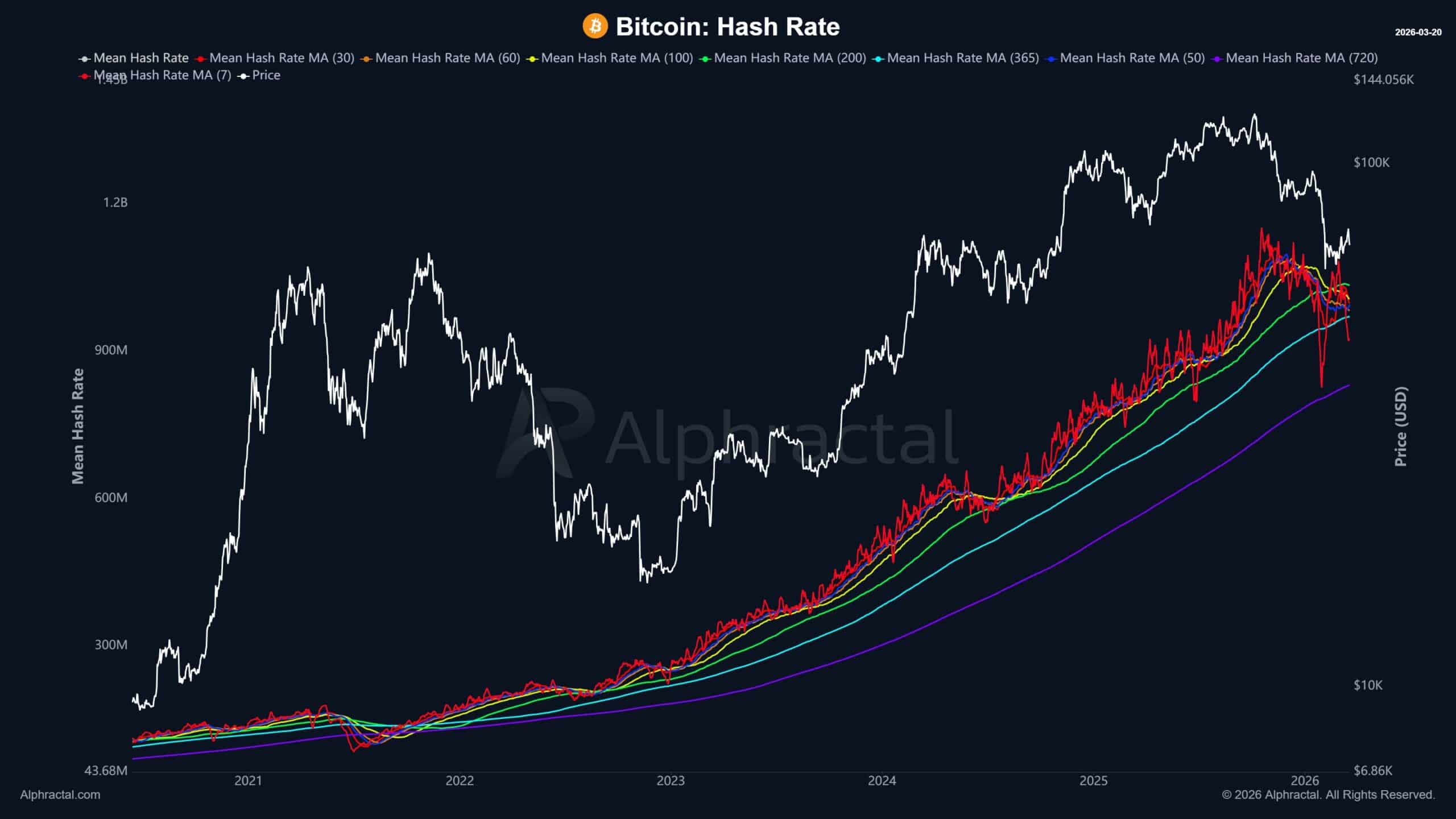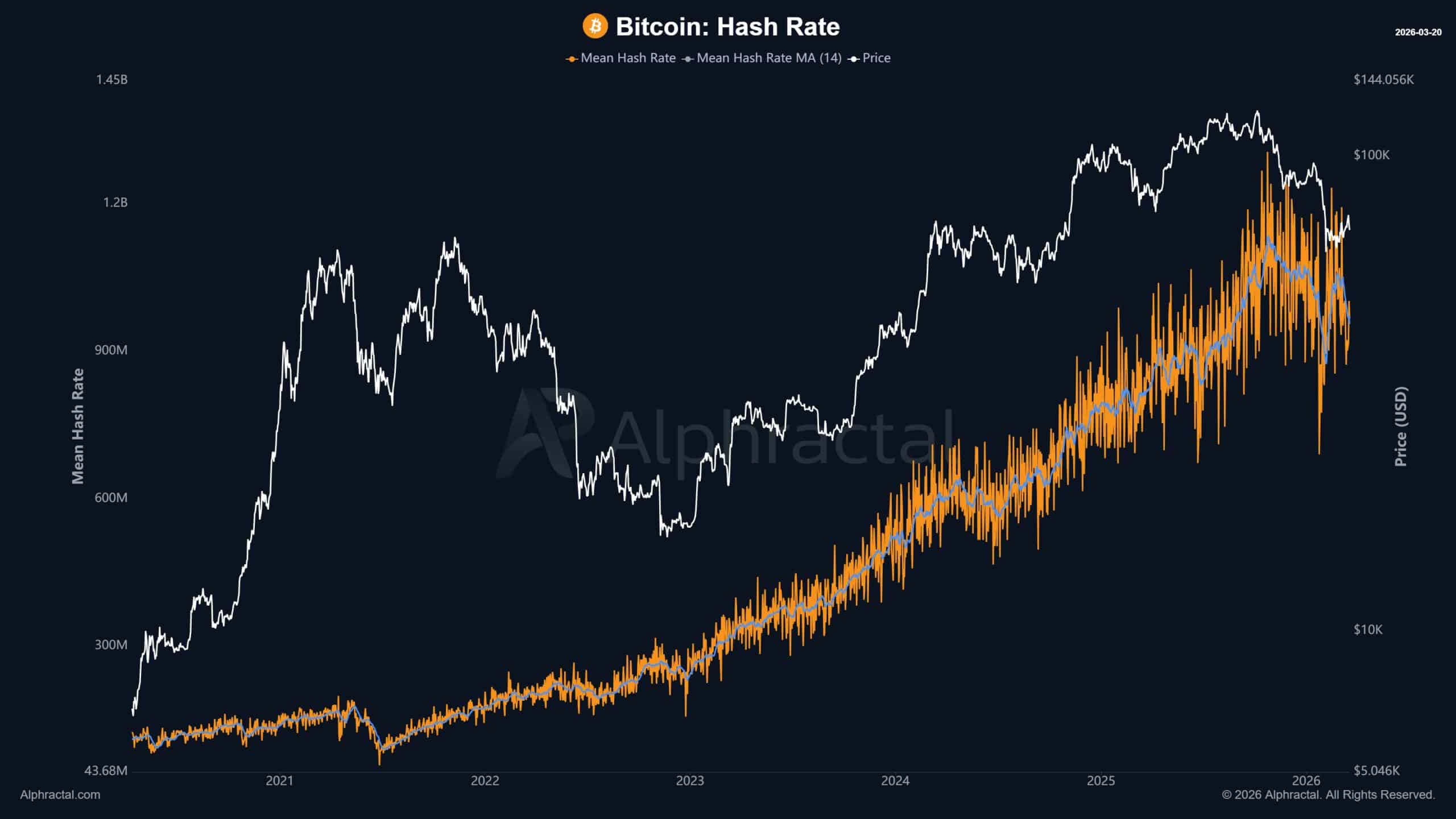 Sementara itu, kesulitan (difficulty) berkurang menjadi 133,79 T dari sekitar 145 T, dengan penurunan lebih lanjut 8–10% diperkirakan pada tanggal 4 April. Karena penyesuaian tertinggal dari kondisi real-time, waktu blok memanjang menjadi 10 menit 40 detik, menandakan berkurangnya kekuatan hashing di seluruh jaringan.