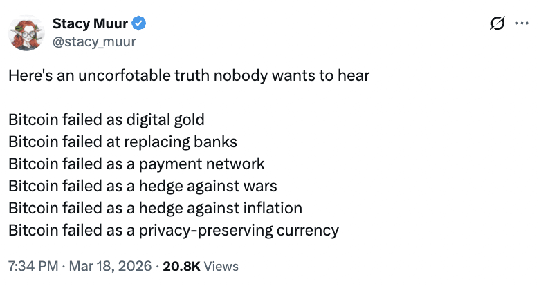 Namun, banyak juga dalam komunitas kripto yang mengkritik Bitcoin, seperti yang disorot oleh seorang pengguna di X yang menunjukkan,