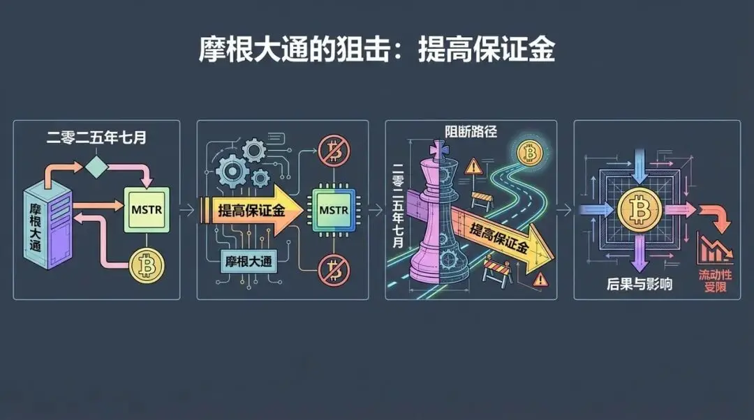 Pada Juli 2025, divisi "Prime Broker" JP Morgan tiba-tiba mengumumkan, akan meningkatkan persyaratan margin MicroStrategy dari 50% menjadi 95%. Ini berarti, jika Anda ingin membeli saham MSTR senilai $100.000, sekarang perlu mengeluarkan $95.000 tunai, hampir memblokir kemungkinan perdagangan leverage.