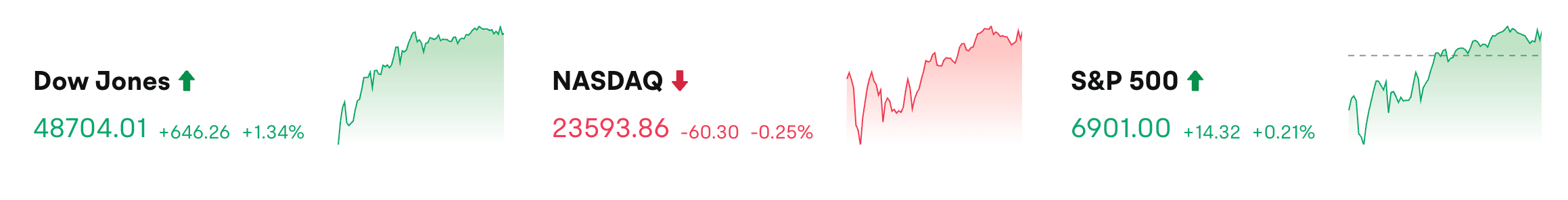 2. Saham AS: Dow Jones naik 1,34%, S&P 500 naik 0,21%, Nasdaq Composite turun 0,25%. Selain itu, Nvidia (NVDA) turun 1,55%, Circle (CRCL) naik 0,18%, Strategy (MSTR) turun 0,73%.