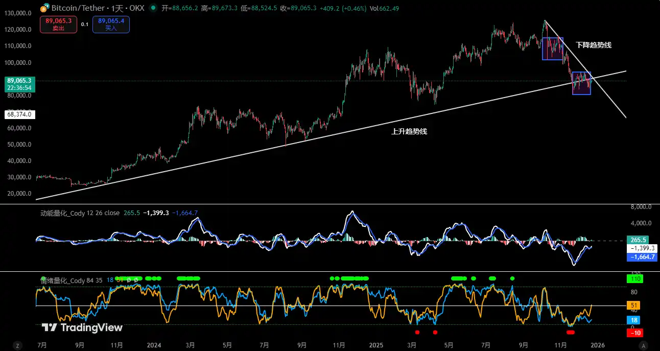Dalam analisis prospektif minggu lalu dengan jelas dinyatakan: pasar kemungkinan besar akan beralih ke pola penyesuaian fluktuasi. Di antaranya, area 87.500~89.000 dolar AS ditetapkan sebagai area observasi kunci, hasil perebutan bull dan bear di sana akan langsung menentukan pilihan arah jangka pendek pasar. Perlu diperhatikan khususnya, jika area ini berhasil ditembus, itu juga akan langsung mempengaruhi kekuatan dan kedalaman penyesuaian harga koin selanjutnya. Berikut adalah tinjauan dan analisis strategi.