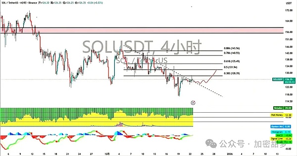 Tekanan terbesar minggu ini adalah 134, ini adalah titik tertinggi gelombang rebound dari 116. Mendekati 133.85附近都可以 fokus short, short di sini rasio risk-reward terbesar jangka pendek. Titik short sekunder di sekitar 131.5.