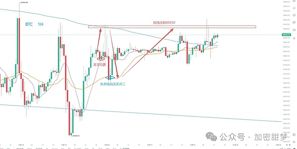 Rel volatilitas saat ini di $90.500, rel bawah di $87.900, tekanan jangka pendek yang sesuai di 90777~92410 (tidak short), support jangka pendek di 85710~82569