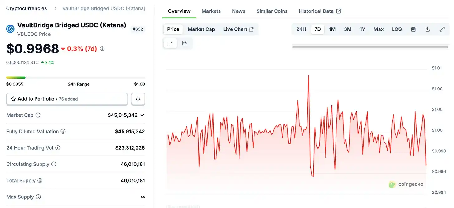 Mekanisme vbToken sangat berbeda. Memegang vbUSDC di dompet, jumlah dan harganya tidak akan bertambah. Imbal hasil yang dihasilkan Vault Bridge di Ethereum tidak mengalir ke pemegang vbToken individu, tetapi ke pool dana DeFi Katana. Pendapatan ini didistribusikan secara berkala ke jaringan, untuk memperkuat mekanisme insentif pool likuiditas Sushi dan pasar peminjaman Morpho.
