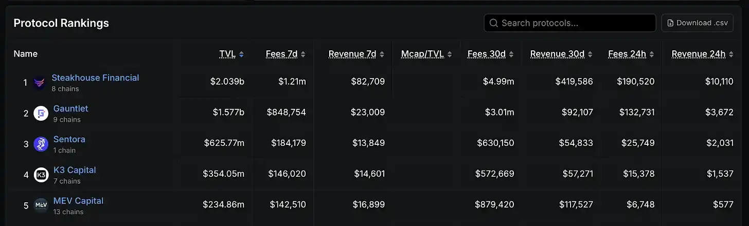 Gauntlet dan Steakhouse Financial adalah lembaga manajemen risiko veteran di bidang DeFi, berpengalaman dalam menetapkan parameter untuk protokol peminjaman utama, memberikan konsultasi untuk proyek DeFi terkemuka. Peran mereka mirip dengan perusahaan manajemen aset profesional di keuangan tradisional, bertanggung jawab mengevaluasi protokol mana yang harus dialokasikan modal, menentukan ukuran posisi yang wajar, dan terus memantau paparan risiko.