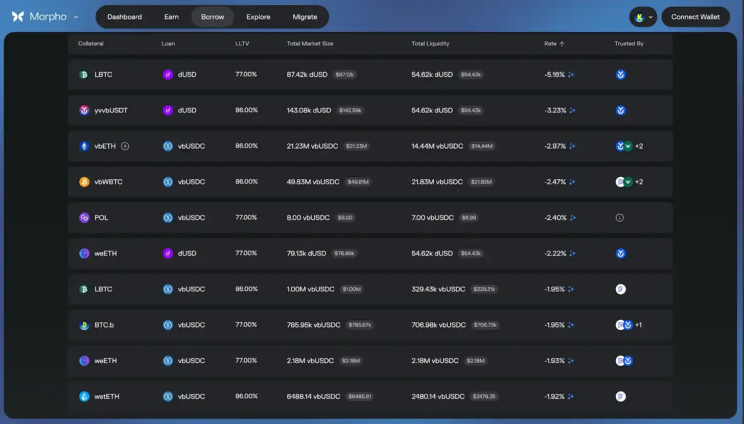 Struktur insentif Katana juga dapat secara signifikan mengurangi biaya peminjaman aktual pada waktu tertentu, bahkan menciptakan suku bunga negatif tergantung pada kondisi pasar dan skema imbalan. Ini karena imbal hasil dari Vault Bridge, CoL, dan AUSD semuanya diinvestasikan kembali ke pasar inti. Namun, penting untuk dicatat bahwa ini adalah hasil yang didorong insentif dan berubah dengan kondisi pasar.