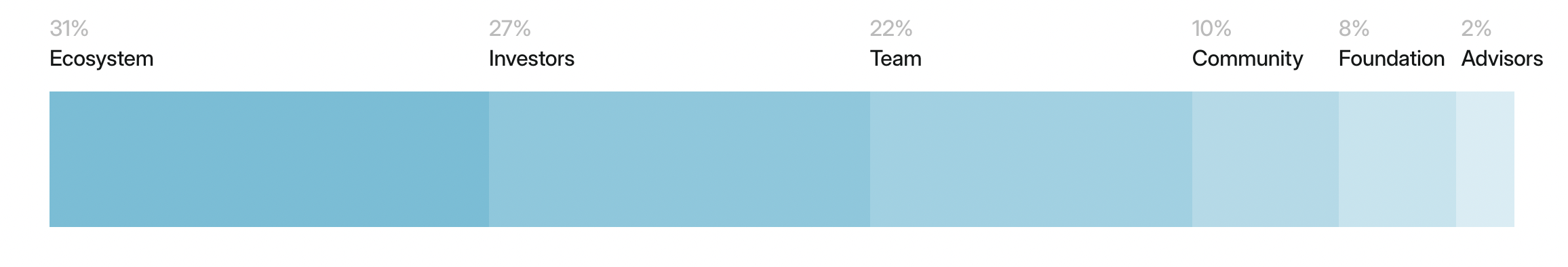 Token proyek ETHGas, GWEI, memiliki total pasokan 10 miliar token. Ekosistem mendapatkan 31%, investor 27%, tim 22%, komunitas 10%, yayasan 8%, dan penasihat 2% (rincian seperti kondisi unlock belum diumumkan).