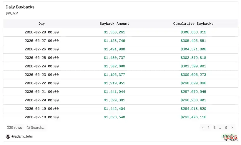 Saat ini Yayasan Pump menggunakan 100% pendapatan dari semua lini produk untuk buyback $PUMP di pasar terbuka. Sejak pengumuman buyback 100% pendapatan pada 15 Juli 2025, dalam 8 bulan: