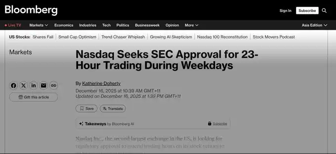 Hm? Apakah ini persiapan untuk pasar "saham on-chain" dan "tokenisasi aset" 7x24 dua tahun mendatang? Mau mulai dengan 5x23 dulu?
