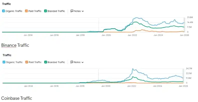 Strategi bursa juga menyesuaikan. Menghadapi biaya akuisisi pelanggan yang tinggi dan aktivitas pengguna lama yang rendah, bursa telah beralih dari "mengejar pertumbuhan" ke "mempertahankan modal yang ada melalui produk penghasil bunga dan perdagangan multi-aset (meluncurkan saham AS, emas, dan valas secara agresif)".