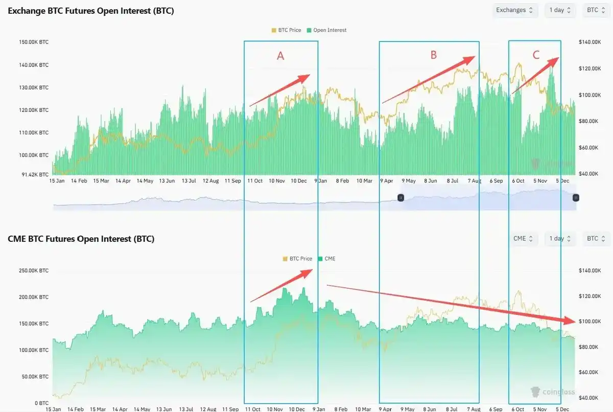 Setiap "puncak" sepertinya mencerminkan perbedaan antara trader domestik dan luar negeri. Ketika dana spot domestik mendorong harga突破, trader spot luar negeri akan memanfaatkan kesempatan untuk menjual. Ketika modal leverage luar negeri mengejar kenaikan, trader futures dan opsi domestik akan mengurangi posisi dan menunggu.
