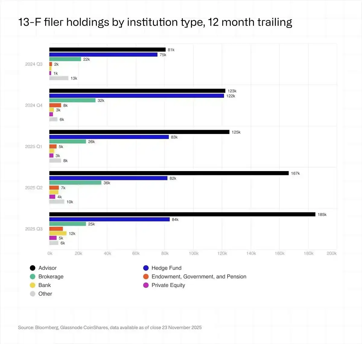 Area lain yang sering disalahpahami adalah ETF. Pada akhir 2025, ETF Bitcoin spot AS memegang sekitar 1,36 juta, meningkat sekitar 23% tahun-ke-tahun, mewakili sekitar 6,8% dari pasokan yang beredar.