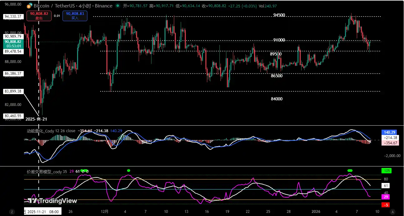 Pada operasi jangka pendek, tetap menggunakan pemikiran kisaran: jika memantul ke area tersebut dan menunjukkan kelelahan energi kinetik, sinyal gagal menembus tinggi, pertimbangkan untuk布局 (menata布局) short pada kenaikan; jika efektif突破 (menembus) $94.500, maka perlu segera stop loss, mengevaluasi ulang struktur pergerakan pasar.