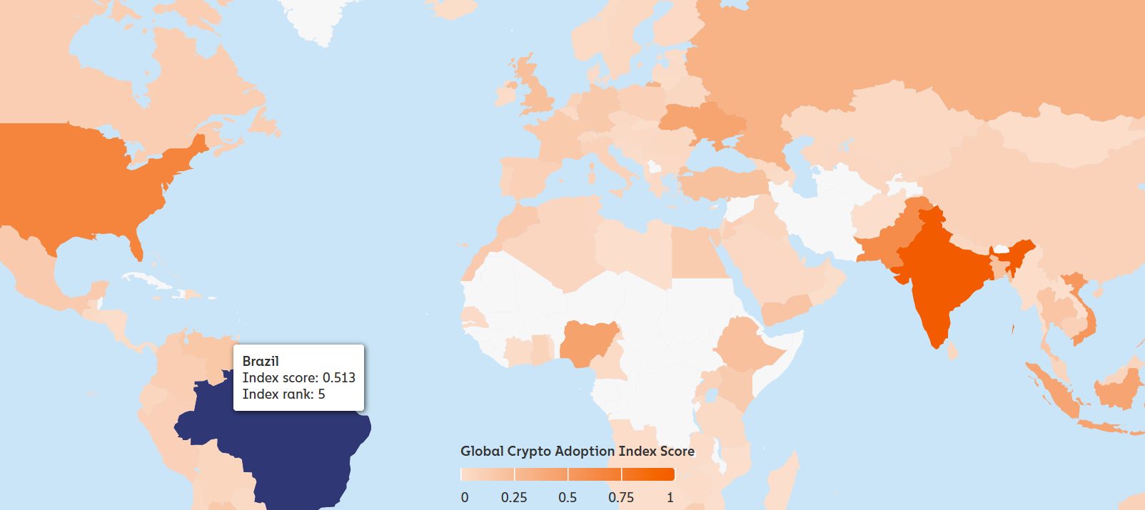ABrasil menempati peringkat kelima secara global dalam adopsi aset digital menurut laporan Chainalysis, di belakang India, Amerika Serikat, Pakistan, dan Vietnam.