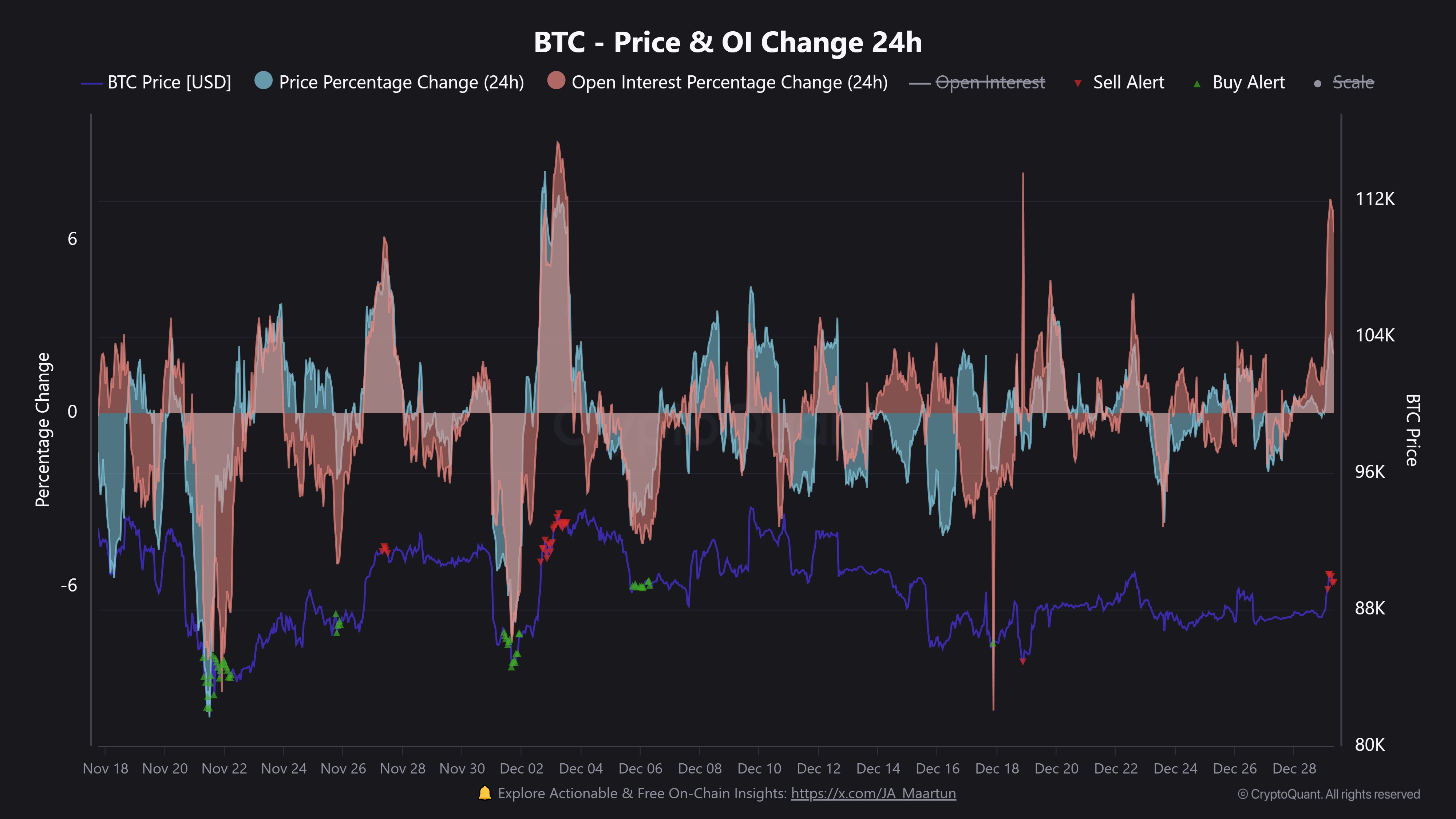 Data untuk perubahan 24 jam dalam Open Interest BTC | Sumber: @JA_Maartun di X