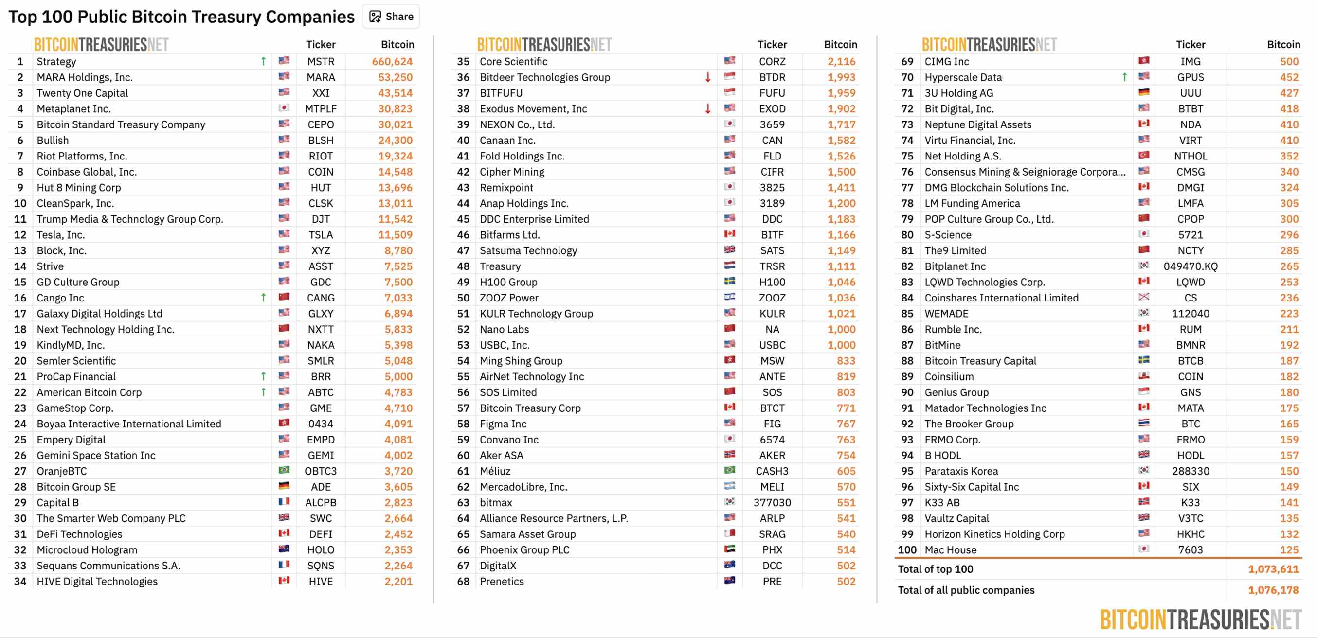 Strategy tidak berjuang sendiri. Menurut data statistik BitcoinTreasuries.NET, per 11 Desember, 208 perusahaan publik global memegang lebih dari 1,07 juta Bitcoin, melebihi 5% dari total pasokan Bitcoin, nilai saat ini sekitar $1000 miliar.