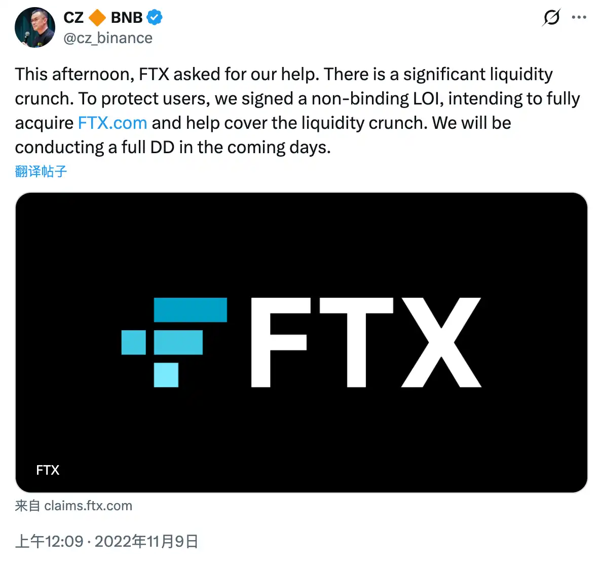 CZ: Siang tadi FTX meminta bantuan kepada kami. Saat ini bursa sangat tidak likuid. Untuk melindungi pengguna, kami menandatangani letter of intent yang tidak mengikat, berencana untuk mengakuisisi penuh FTX untuk meredakan krisis likuiditas. Kami akan melakukan due diligence menyeluruh dalam beberapa hari ke depan.