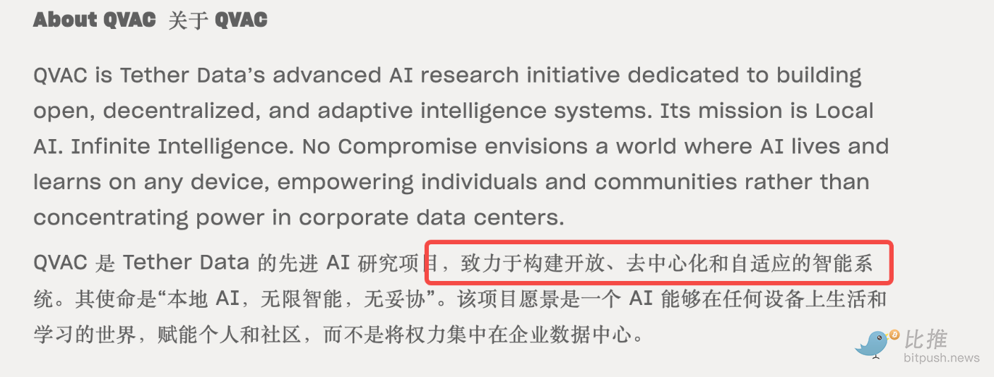 Tether melakukan AI, meneriakkan slogan "terdesentralisasi", "berjalan lokal" dan "mengembalikan kecerdasan kepada individu".