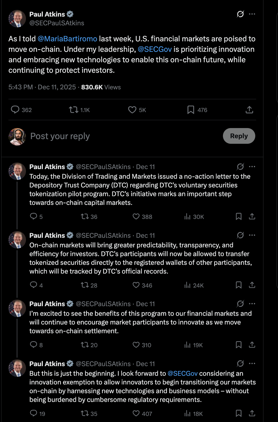 Regulator SEC menerbitkan panduan satu hari setelah Ketua SEC Paul Atkins mengatakan bahwa sistem keuangan warisan sedang bergerak onchain.