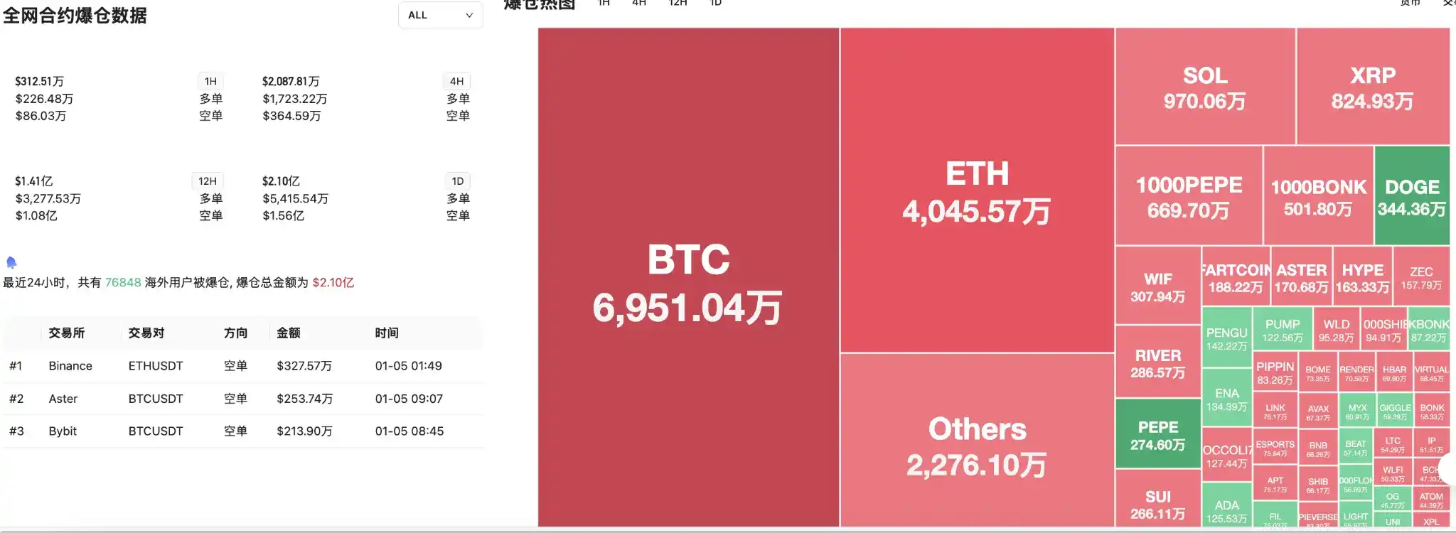 - Data Likuidasi 24 Jam: 76.848 orang dilikuidasi secara global, total jumlah likuidasi $210 juta, dengan likuidasi BTC $65,91 juta, ETH $40,45 juta, SOL $9,70 juta